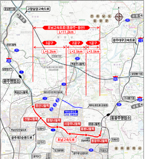 동광주IC-광산IC 총 11.2㎞ 6차로 확장 추진