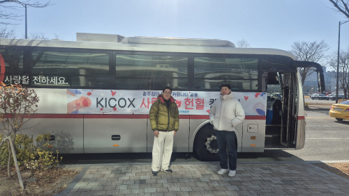 국립광주과학관은 최근 첨단산단 사회적 가치실현 커뮤니티 회원기관들과 함께 ‘사랑의 헌혈 봉사’에 동참했다. 사지는 직원들이 헌혈버스 앞에서 기념촬영을 하는 모습.
