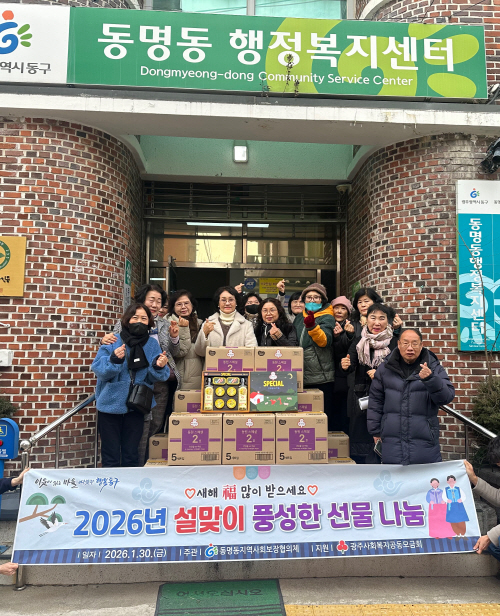 송경란 동명동장은 “명절 위문품 전달을 통한 온정 나눔이 주민들에게 힘이 되길 바란다”며 “해마다 어려운 이웃을 위해 꾸준히 나눔을 실천해 주시는 동명동 지사협 위원에게 감사하다”고 밝혔다.