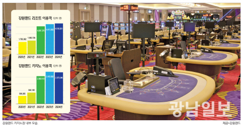 강원랜드 카지노 이용객은 2024년 기준 237만여명에 달하며, 리조트까지 포함하면 690만명에 이른다.