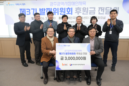 한상득 광주시장애인체육회 수석부회장은 “3년 연속 광주장애인 체육발전위원회에 참여해주신 김용수 대표이사께 감사하다”며 “모집된 후원금이 장애인체육 발전과 선수 육성 등 필요한 곳곳에 쓰일 수 있도록 꼼꼼하게 살피면서 지원에 최선을 다하겠다”고 말했다.