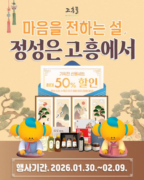 이번 기획전은 설 명절을 앞두고 감사와 정성을 전할 수 있는 고흥 대표 농수특산물 선물세트를 중심으로 구성됐으며, 최대 50% 할인 혜택을 제공해 합리적인 가격으로 명절 선물을 준비할 수 있도록 기획됐다.