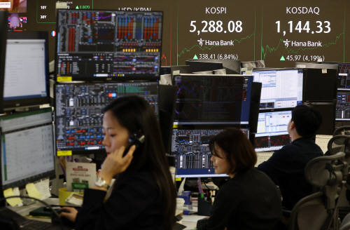 오전 9시 26분에는 코스피200선물 지수가 5% 넘게 치솟으면서 프로그램 매수호가 일시 효력정지(사이드카)가 발동되기도 했다.