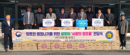 노정규 광주보호관찰위원협의회장은 “명절을 앞두고 보호관찰 대상자들에게 조금이나마 힘이 되길 바라는 마음으로 선물을 준비했다”며 “앞으로도 지역사회 구성원으로서 이들이 건강하게 자립할 수 있도록 지속적인 관심과 지원을 이어가겠다”고 말했다.
