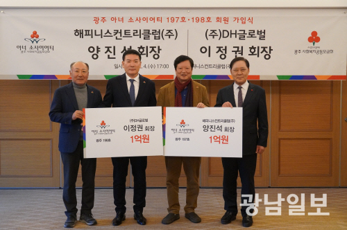이날 이정권 ㈜DH글로벌 회장도 광주 아너 소사이어티 198호 회원으로 함께 가입해 의미를 더했다. 이 회장은 광주경영자총협회 부회장으로 활동하며 전북 부안군 고향사랑기부금 전달, 근농인재육성재단 장학금 기탁 등 기업 성과를 사회와 나누는 데 앞장서고 있다.