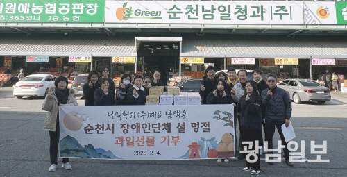 순천시 농산물 도매시장에서 농산물 유통회사를 운영하는 남일청과㈜ 남택용 대표는 지난 4일 순천시 장애인 단체에 과일 100박스(약 300만원 상당)를 전달하며 이웃사랑을 실천했다.