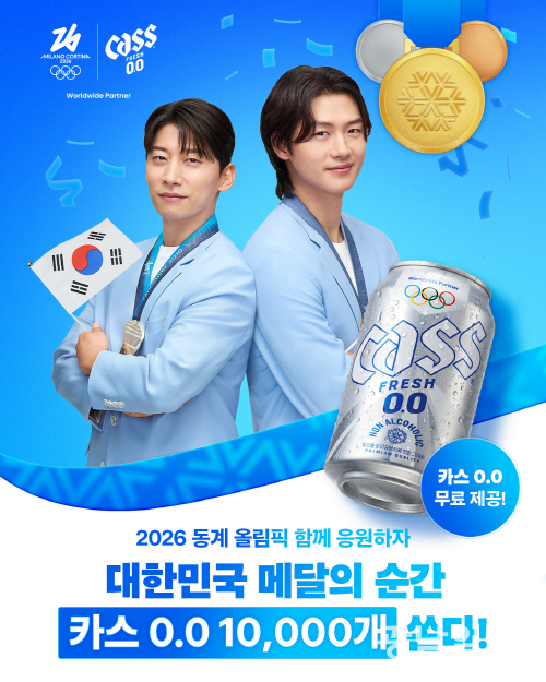 2026 밀라노-코르티나 동계올림픽 공식 파트너 카스는 국가대표 선수의 선전을 기원하고, 메달의 기쁨을 함께 누릴 수 있도록 ‘카스 0.0 무료 기프티콘 증정 이벤트’를 연다고 10일 밝혔다.
