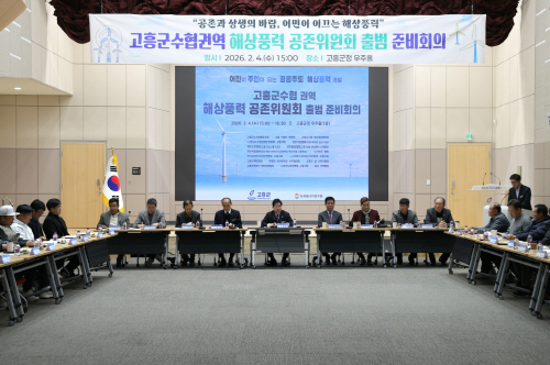 고흥군은 최근 군청 우주홀에서 공영민 군수를 비롯해 이홍재 고흥군수협장, 어민 대표위원 등 90여명이 참석한 가운데 ‘고흥군수협 권역 해상풍력 공존위원회 출범 준비회의’를 개최했다.