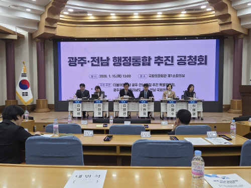 김영선 전남연구원장이 국회의원회관에서 열린 ‘광주·전남 행정통합 추진 공청회’에서 좌장을 맡아 종합토론을 주재하고 있다.