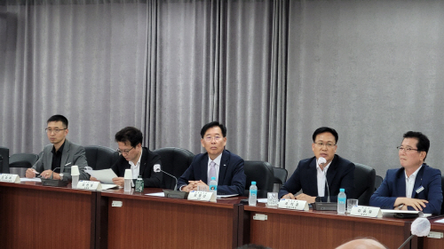김영선 전남연구원장이 연구원 상생마루에서 열린 ‘화순군 미래비전 조정회의’에 참석, 주요 논의사항을 청취하고 있다.