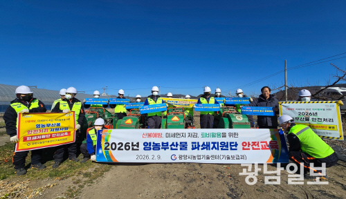 광양시는 최근 농업기술센터에서 ‘2026년 영농부산물 파쇄지원단’ 본격 운영을 앞두고 안전교육과 함께 발대식 및 캠페인을 개최했다고 10일 밝혔다.