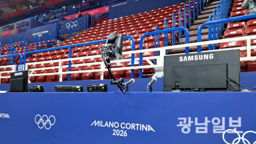 삼성전자는 2026 밀라노 코르티나 동계올림픽 쇼트트랙 경기장에 고성능 모니터를 제공해 심판진의 공정한 판단과 생생한 현장 중계를 지원하고 있다고 12일 밝혔다.