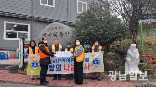 국제라이온스협회 355-B1지구 광주VIP라이온스클럽은 지난 11일 설날을 앞두고 사회복지법인 분도와 안나 개미꽃동산 사랑의식당에서 후원금 전달과 배식 봉사활동을 진행했다.