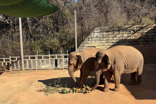 우치동물원 안방마님인 아시아코끼리 ‘봉이’(1998년생)와 ‘우리’(2010년생) 모녀에게는 ‘과일시루더미’를 제공했다. 두 코끼리는 특식 앞에 어깨를 맞대고 사이좋게 과일을 나눠먹으며 모녀의 정을 나눴다.