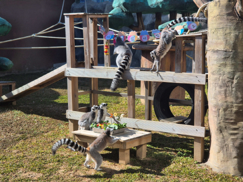 알락꼬리여우원숭이들은 특식으로 제공된 열대과일을 한입 베어 문 뒤, 놀란 표정으로 뒷걸음질하며 시민들에게 웃음을 줬다.