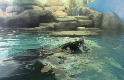 물범 ‘초롱’이는 두 딸 ‘희망’, ‘몰랑’이와 함께 생장어 사냥을 즐기며 스트레스를 날렸다. 막내딸 몰랑이는 어느덧 희망이 못지않은 수영실력을 뽐내며 장어를 쫓았다.