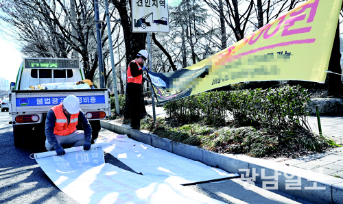 도심 불법 현수막 철거