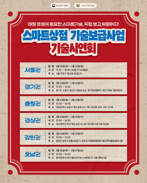 소상공인시장진흥공단은 오는 27일까지 ‘스마트상점 기술보급사업’의 일환으로, ‘스마트상점 권역별 기술 시연회’를 개최한다고 22일 밝혔다.