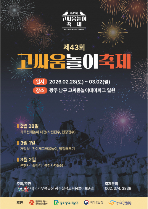 남구는 오는 28일부터 3월2일까지 칠석동 고싸움놀이테마공원 일원에서 제43회 고싸움놀이축제를 개최한다.
