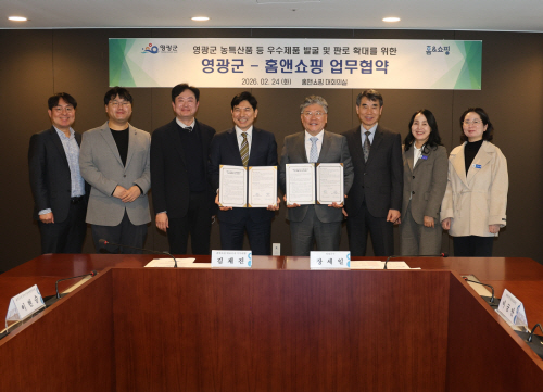 영광군이 우수 농특산물 판로 확대와 중소기업·소상공인 우수제품 발굴을 위해 ㈜홈앤쇼핑과 업무협약을 체결했다.