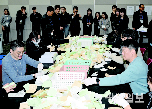 6·3 전국동시지방선거 모의개표 오는 6월 3일 치러지는 제9회 전국동시지방선거를 앞두고 25일 오후 광주 서구 치평동 김대중컨벤션센터에서 광주시선거관리위원회 관계자들이 모의 개표 시연을 하고 있다. 최기남 기자 bluesky@gwangnam.co.kr