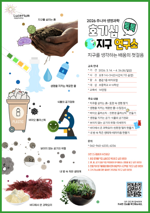 이번 교육은 초등학교 4학년부터 6학년까지 오는 3월 14일부터 4월 25일까지 매주 주말에 운영된다. 토양을 비롯해 물과 공기, 해양, 생태계 등 다양한 환경 주제를 실험과 관찰, 제작 활동을 통해 탐구할 수 있다. 학생들이 환경 문제를 과학적으로 이해하고 지속 가능한 삶의 중요성을 인식하도록 설계된 한것이 특징이다.