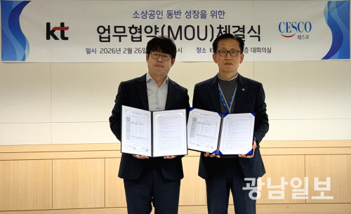 KT 전남전북광역본부와 CESCO 호남사업본부는 지역 소상공인의 안정적인 사업 운영과 위생 환경 강화를 지원하기 위한 업무협약을 체결했다고 26일 밝혔다.