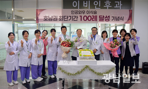 광주보훈병원은 최근 이비인후과가 인공와우 이식술 100건을 달성하고 기념식을 가졌다.