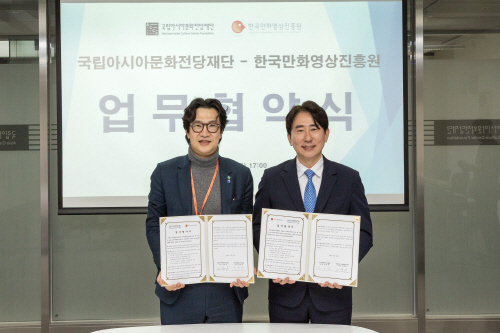 국립아시아문화전당재단(ACC 재단)과 한국만화영상진흥원은 최근 ACC 재단 다목적회의실에서 만화 문화의 진흥과 국제 경쟁력 강화를 위한 업무협약을 체결했다.