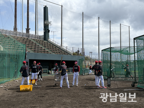 지난 22일 일본 오키나와에 도착한 KIA 선수단은 오키나와현 킨 구장에서 2차 스프링캠프 훈련을 소화하고 있다. 한화이글스와의 연습 경기를 하루 앞둔 28일 선수단은 실전 대비 컨디션 끌어올리기에 집중했다.