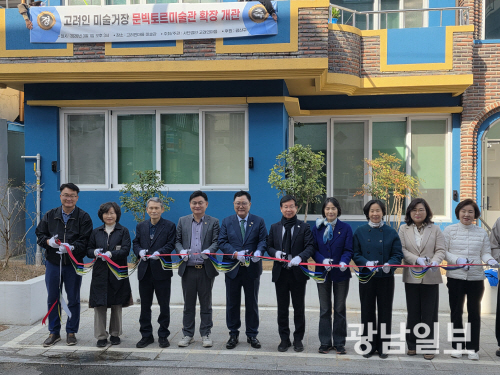 (사)고려인마을은 지난 1일 광주 광산구 산정동에서 문빅토르 미술관 확장 개관식을 개최했다. 사진은 박병규 청장과 내외빈들이 테이프 커팅을 하고 있는 모습.