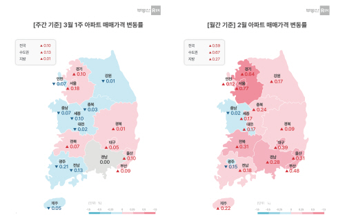 지방은 0.27% 상승했다. 지역별로는 서울(0.77%), 경기(0.64%), 부산(0.48%), 대구(0.39%) 등 순이었다.