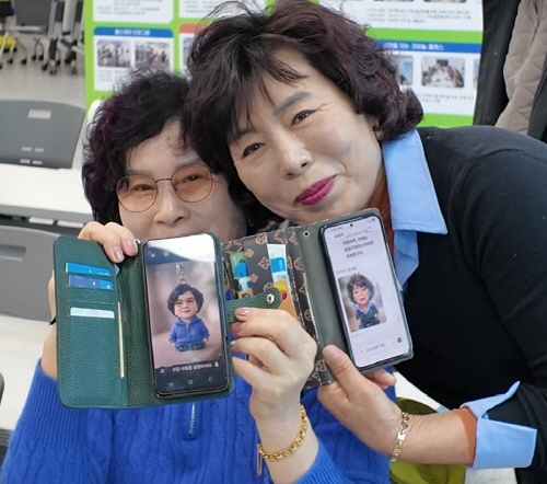 교육 참여자들이 인공지능(AI) 맛보기 교육(내 손안의 AI 비서) 결과물을 들어보이고 있다.
