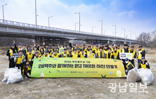 이번 영산강 일대 하천 정화 활동은 민·관·공이 함께한 합동 행사로 열렸다. 박재연 오비맥주 광주공장장 등 임직원 30여 명과 광주 북구 환경생태국 기후환경과, 한국환경보전원 관계자 10여 명이 참여해 하천 인근 쓰레기를 줍는 ‘플로깅’ 활동을 실시했다.