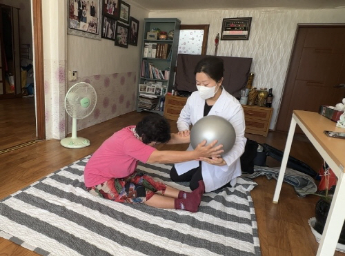 대상자의 신체 상태와 주거환경을 면밀히 고려해 낙상 예방을 위한 자가 운동 교육과 도구를 활용한 운동 방법, 자세 교정을 지도하고 있으며, 근력 강화와 관절 기능 유지에 도움이 되는 다양한 재활운동을 진행하고 있다.