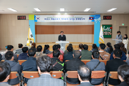 곡성군은 본격적인 영농철을 맞아 농촌 인력난 해소를 위한 2026년 공공형 계절근로자의 입국을 마치고 환영 행사를 개최했다. 사진제공=곡성군