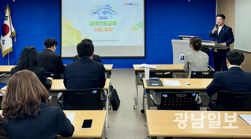 전남교육청은 지난 13일 청사 중회의실에서 ‘생태전환교육 담당자 협의회’를 열고 기후위기 대응 교육 강화 방안을 논의했다. 이날 협의회에서는 2026년 기본 계획을 공유하고 디지털 생태탐사지도 웹 운영 방법과 교육지원청 도보탐사(플로깅) 우수 사례 등을 소개했다.