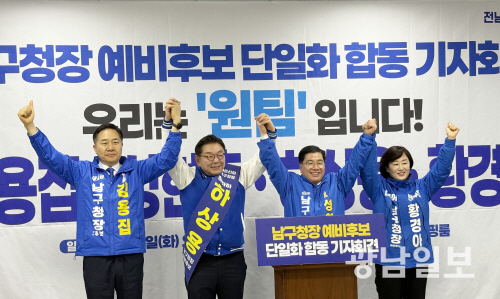 더불어민주당 광주 남구청장 예비후보들이 예비경선을 앞두고 후보 간 단결과 통합의 필요성을 강조하며 ‘원팀’을 선언, 선거 구도에 지각변동이 생길 것으로 전망된다.