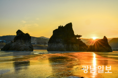 허경재 작 ‘도담삼봉일출’