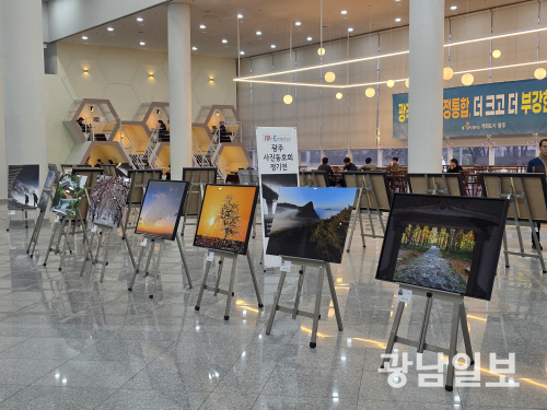 광주사진동호회는 열여덟번째 정기회원전을 오는 4월 1일까지 광주시청 1층 시민홀쉼터에서 진행한다. 사진은 전시 전경.