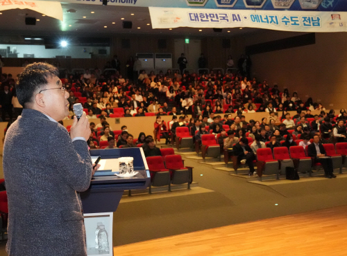 육성철 국가인권위원회 광주인권사무소장이 최근 도청 김대중강당에서 도와 시·군 공무원, 공공기관 임직원 500여명이 참석한 가운데 ‘공직자의 인권감수성이 세상을 바꾼다’를 주제로 강연하고 있다. 사진제공=전남도
