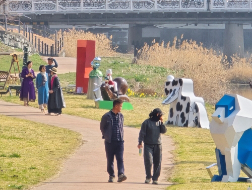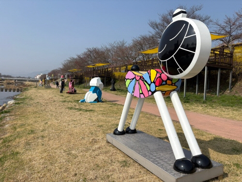 곡성군과 크라운해태가 4월 1일부터 6월 9일까지 뚝방마켓이 열리는 곡성천 일원에서 견생(見生) 조각전을 개최한다. 사진은 지난해 행사 모습. 사진제공=곡성군청
