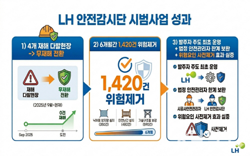 제도를 6개월간 시범 운영한 결과 건설 현장 위험 요소 1420건이 제거되면서 무재해 전환 성과를 거뒀다고 LH는 설명했다.
