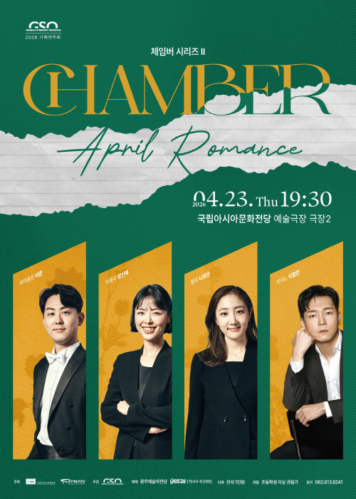광주시향 체임버 시리즈Ⅱ ‘April Romance’는 광주예술의전당 누리집과 Yes 24에서 예매할 수 있다. 초등학생 이상부터 관람할 수 있다. 입장료는 전석 1만원, 문의 062-613-8241.