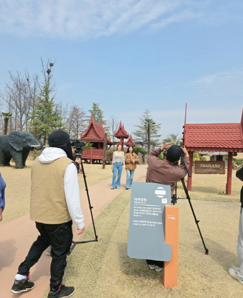 태국정원에서 촬영 중인 여행프로그램 모습. 사진제공=순천시청