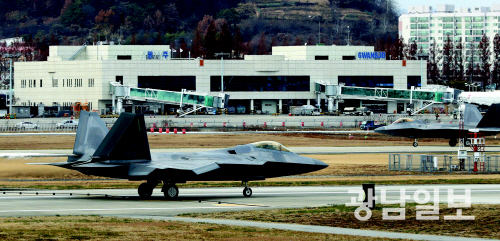 국방부가 ‘군공항 이전 및 지원에 관한 특별법’에 따라 전남 무안군 망운면 일대를 광주 군공항 예비이전후보지로 공식 선정·발표했다. 사진은 공군 제1전투비행단이 광주 군공항 활주로에 착륙하고 있는 모습.