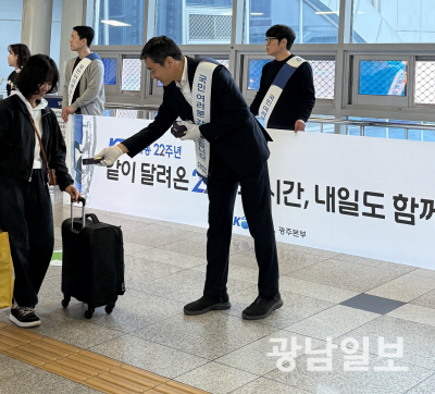 코레일 광주본부는 2일 KTX개통 22주년을 맞아 고객과 함께하는 행사를 열고, 감사의 마음을 전달했다고 밝혔다.