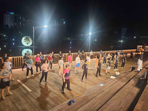 달빛 광장체조는 월산 근린공원 사랑나눔 운동장에서 진행 중이다.