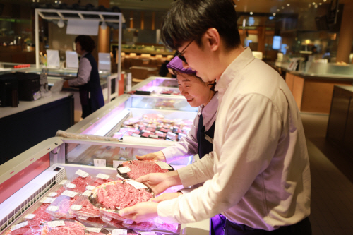 롯데백화점 광주점이 한우, 돈육, 청과 등 다양한 식품 품목을 특별한 가격으로 제안하는 ‘푸드 위크’ 행사를 오는 10일부터 19일까지 진행한다. 사진은 매장 직원이 고객에게 품목을 설명하고 있는 모습.