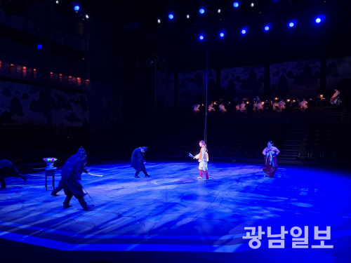 국립아시아문화전당재단(ACC재단)이 지난 7일 국립아시아문화전당 예술극장 극장1에서 마련한 국립극장 제작 마당놀이 ‘홍길동이 온다’ 프레스콜에서다.